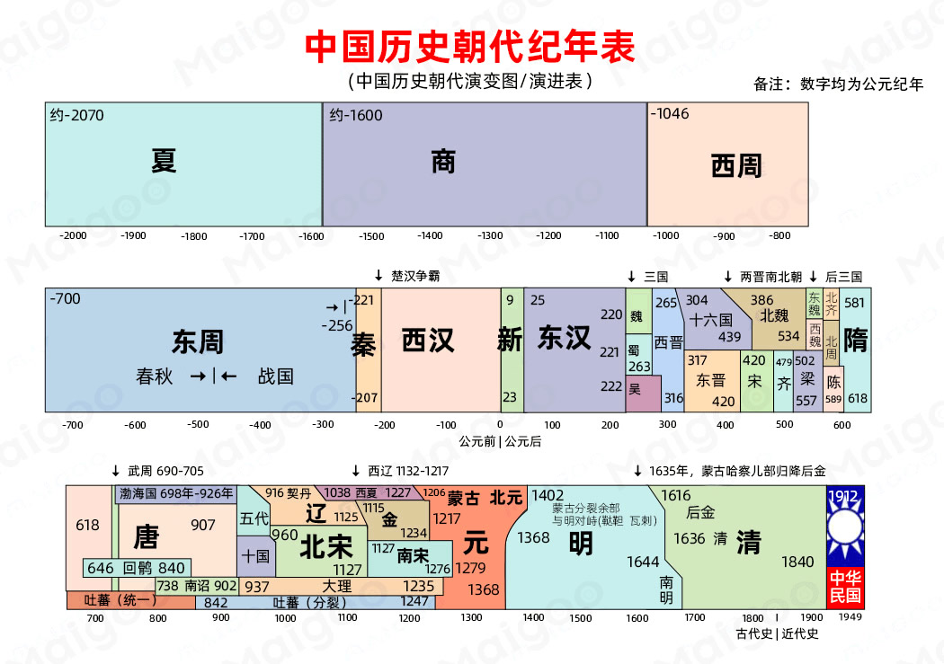 夏商与西周,东周分两段。春秋和战国,一统秦两汉。三分魏蜀吴,二晋前后延。南北朝并立,隋唐五代传。宋元明清后,皇朝至此完 。